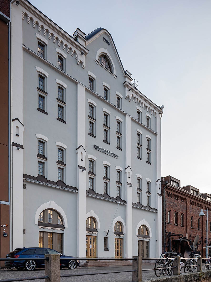 The exterior of this stunning office building overlooking the Katajanokka guest harbour represents the beautiful late Art Nouveau style.
